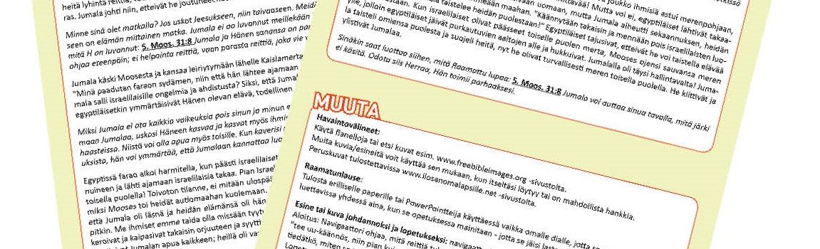 Tähän julkaisen ”Raamatun aarteita etsimässä” -sarjaa, eli opetuksia alkaen luomisesta… tavoitteena kulkea pikkuhiljaa halki Raamatun. Opetukset löytyvät sekä videona että tekstimuotoisena. Videoita voit näyttää vapaasti pyhäkouluissa, kerhoissa, leireillä tai muussa lastentoiminnassa. Tekstiversiota voit käyttää hyödyksesi, kun itse valmistelet opetusta. Ota siitä se, mikä hyvää on. Kertomuksen kuvitukseen voit käyttää flanelloja tai ladata vaikka ilmaiset kuvat … Jatka artikkelin Halki Raamatun -opetussarja lukemista